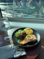 The dinner cruise had salmon, veggies, a salad, and a fruit tart dessert. We got to see all the sights, and when it was over we took a bus to the Eiffel Tower. We took a million pictures and stayed to see it all lit up at night. (note: the sun didn't set until around 11 pm!)