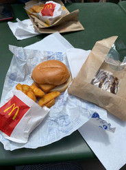 Once we landed, Sabria and I stowed our bags at our hotel (Izzy) and went shopping and hunting for food. We went to a McDonald's and they had WEDGES and brownies.